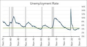 - 4.6% unemployment – up 0.2% since September. The U.S. unemployment rate rose 0.2% to 4.6% in November compared to 4.4% in September, the last month the Labor Department reported the unemployment rate. The increase was largely due to rising labor force participation, as the number of unemployed people was little changed. While still historically low, unemployment has been steadily rising in recent months to the highest level since September 2021. The labor force participation rate rose slightly to 62.5% from 62.4% in September. ‘