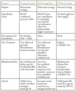 Comparing Trump Accounts, 529 Savings Plans, and UTMA Accounts